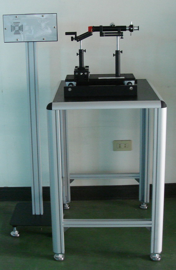 This unit measures the Refractive powers of safety eyewear ( Spherical refractive power , Astigmatism, & Resolving Powerr) , in accordance with ANSI Z87.1 2010 . (included is a 8 power adjustable telescope, targets ( sun burst and NSB definition), and associated fixtures. Also can be supplied with optical mirror to reduce distance from 35 feet (10.67m) to 17.5 feet ( 5.335m)