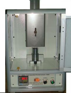 A steel ball heated to (900 ±20) °C is placed on test lens. Time for the ball to penetrate the lens is measured, and should not exceed 10 seconds.